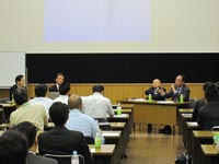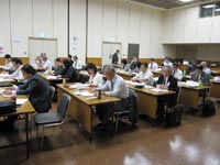 株式会社建物鑑定の佐藤政昭氏による固定資産税評価についての説明の後は、トムソンネットの森川氏が乗合代理店のシステムについて、先ず、米国代理店のシステム事例としてこれまでに訪問したアンタレク・ムーア社やクレメンツ社のシステムを紹介、更に、米国損保代理店のビジネス・インフラを図で示した。次に日本の代理店システムの事例として、地域展開型代理店、広域展開型代理店、全国展開型代理店に分け、4社の実例を示した。これは4月と5月にトムソンネットのスタッフが会員会社を訪問、インタビューした記録である。これからの代理店ITとして、IIABJシステム共有可能性や保険会社との役割分担、最新のIT技術について語った。